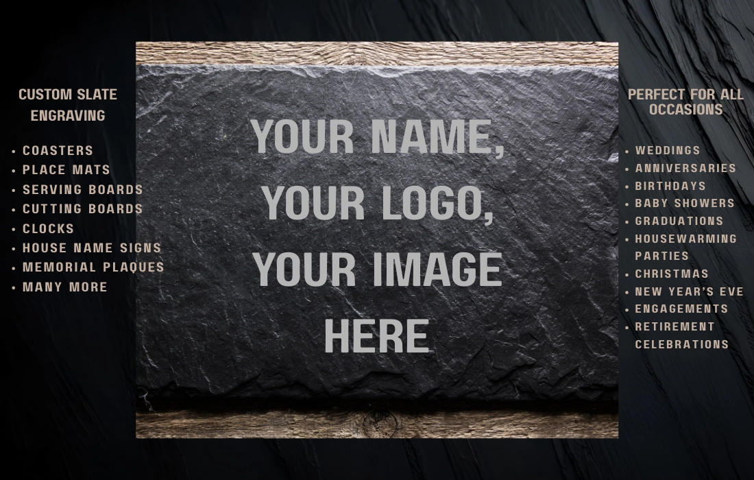 We source high-quality slate and use precision engraving to create durable, beautiful items that suit cosy homes and thoughtful gifts. Whether you’re ordering a set of coasters for a housewarming, a custom house plaque to make your place feel like home, or a stylish slate placemat, we make adding a personal touch simple and reliable.