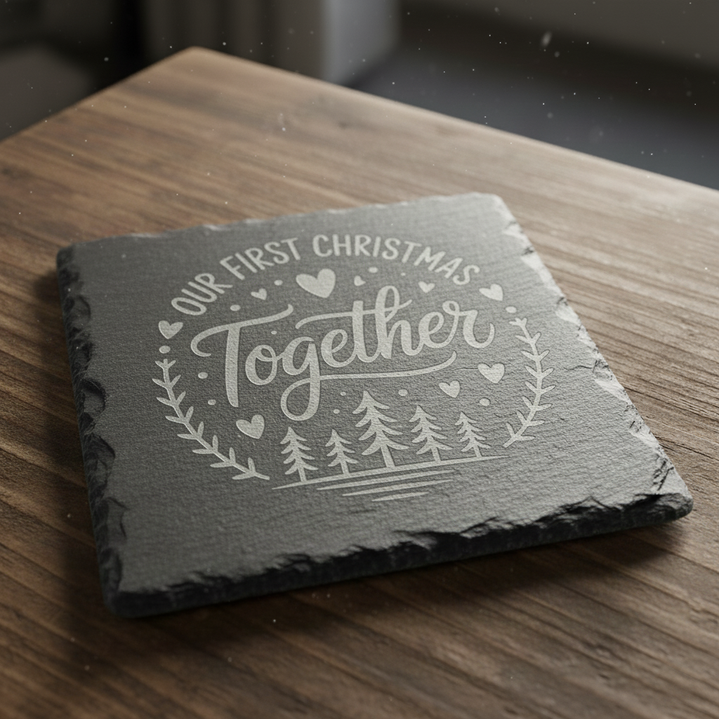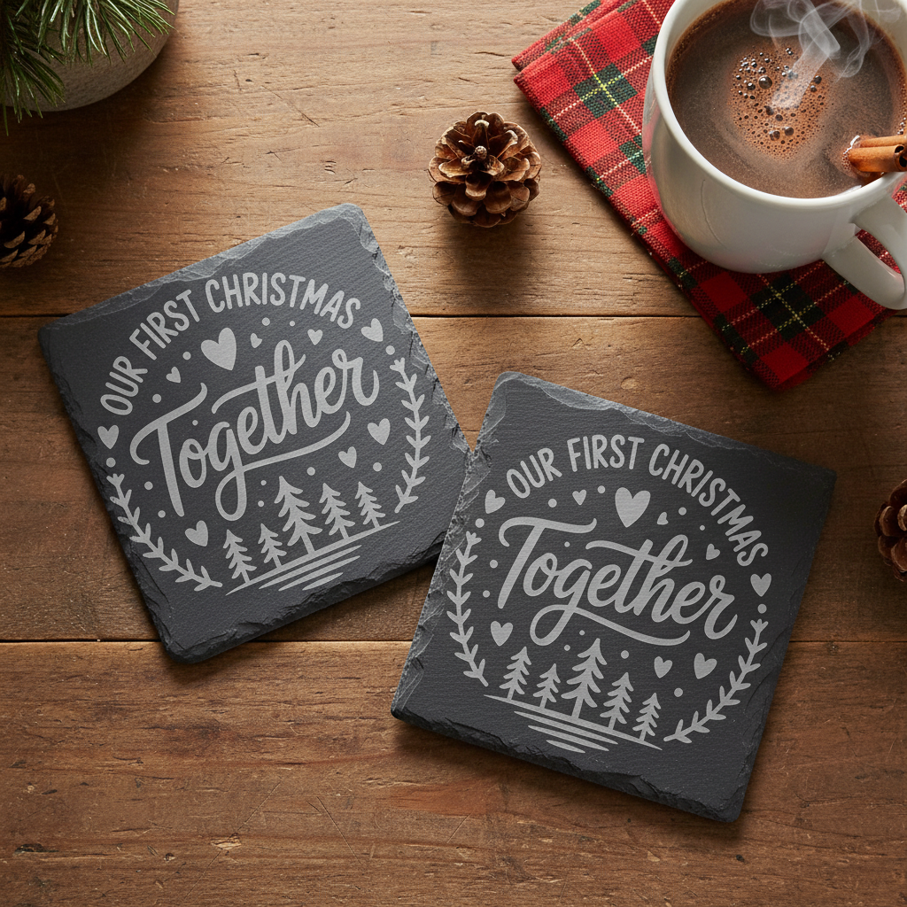 🎄 **Celebrate Your Special Journey with Our 'Our First Christmas Together' Engraved Slate Coaster!** 🎄Mark that unforgettable first Christmas with a truly unique and heartfelt keepsake from Lone Wolf Engraving. Our exquisite square slate coaster, featuring the charming 'Our First Christmas Together' design, is the perfect way to commemorate this cherished milestone.🎁 **A Gift from the Heart:**This This beautifully engraved coaster is more than just a place to rest a drink; it's a *symbol of love, new beginnings, and shared memories*.