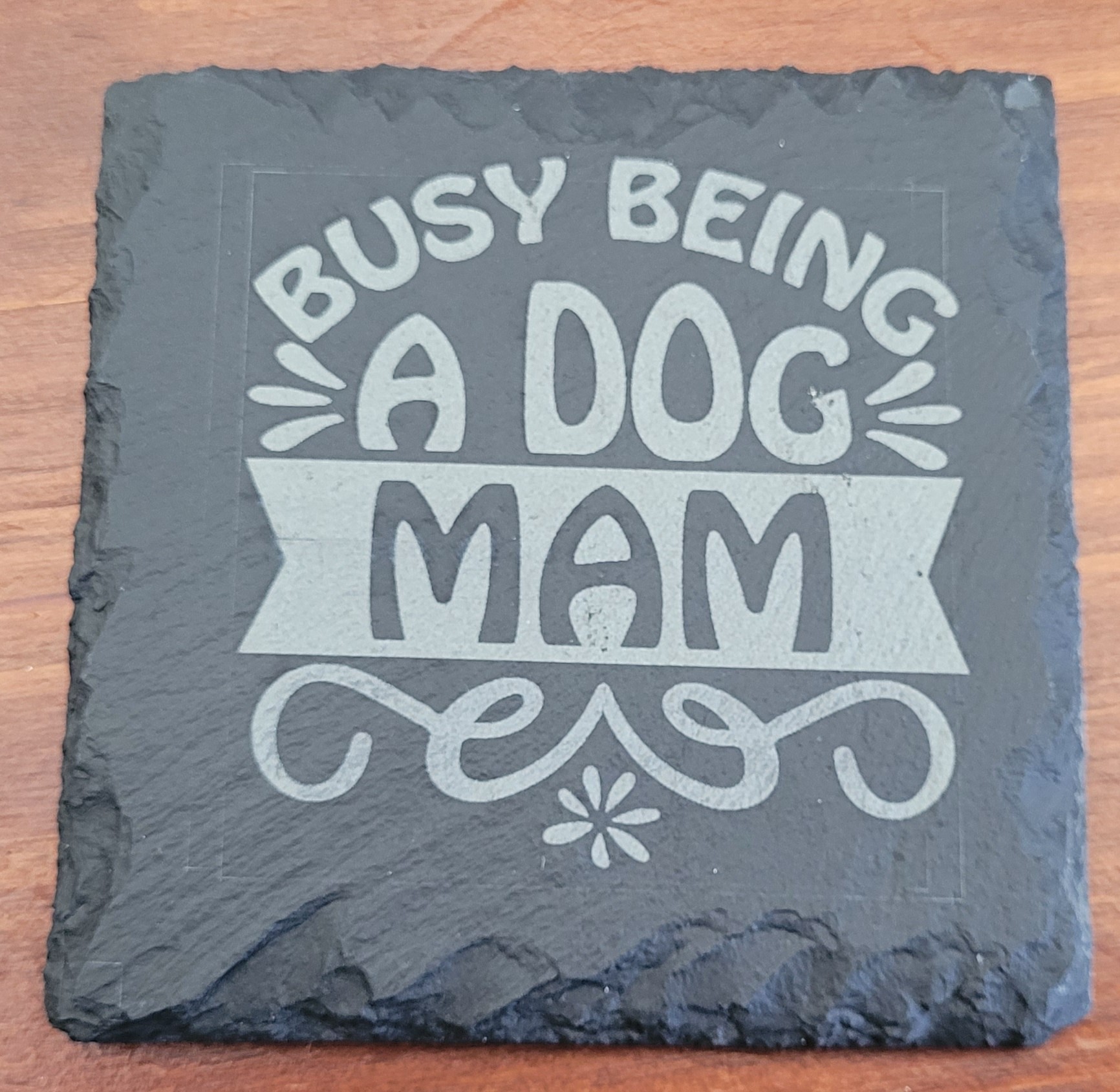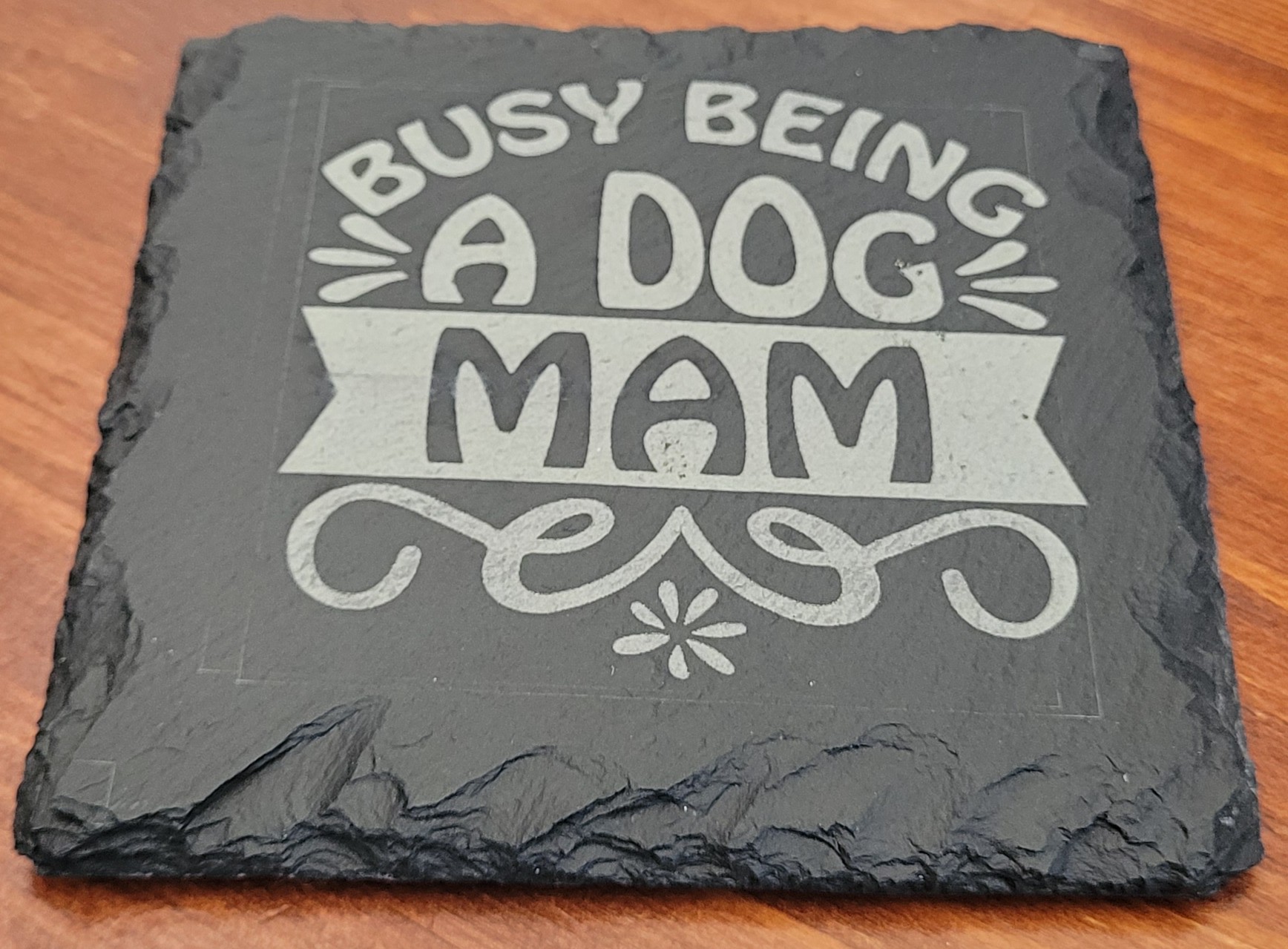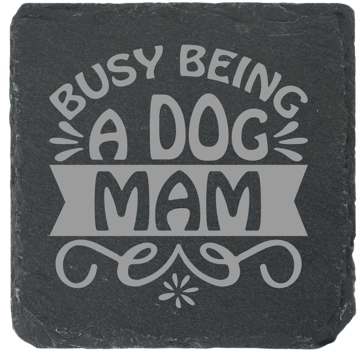 Slate Coaster: "Busy Being A Dog Mam" - Perfect Gift, Handmade, Laser‑Engraved - Lone Wolf Engraving